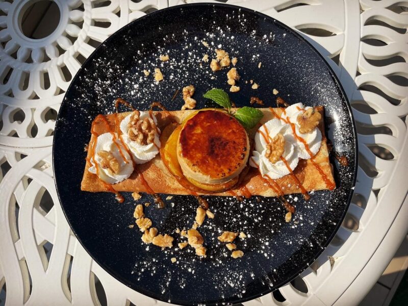 「りんごのキャラメリゼとカタラーナのクレープ」