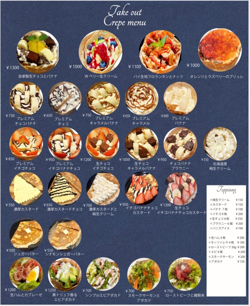 季節のフルーツを使った限定クレープから、お食事系まで幅広くラインナップ。